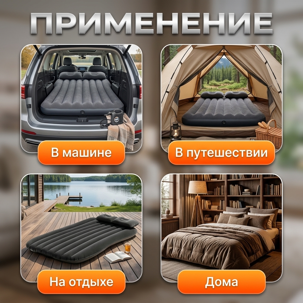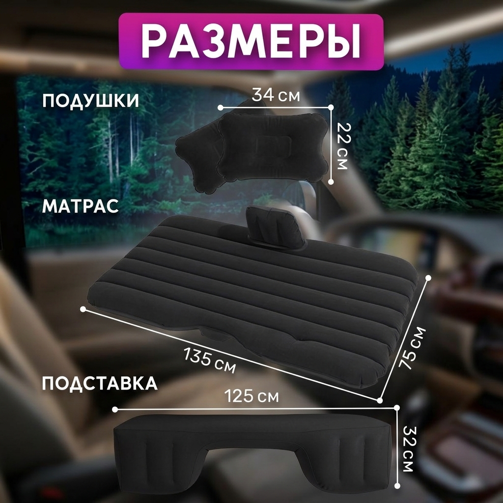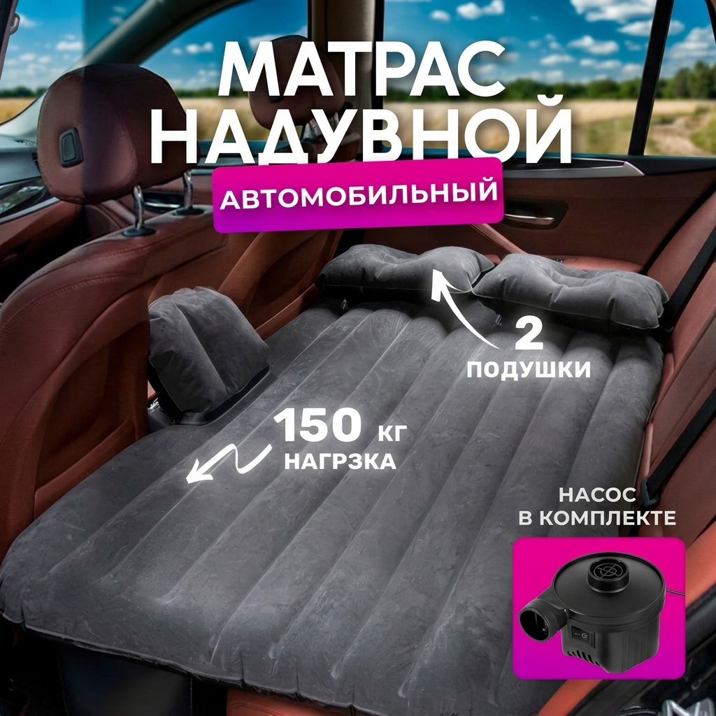 Устали неудобно спать в дороге? Автомобильный надувной матрас превращает заднее сиденье в полноценное спальное место. Идеально для путешествий, кемпинга и дальних поездок — больше не нужно искать гостиницу, чтобы отдохнуть.